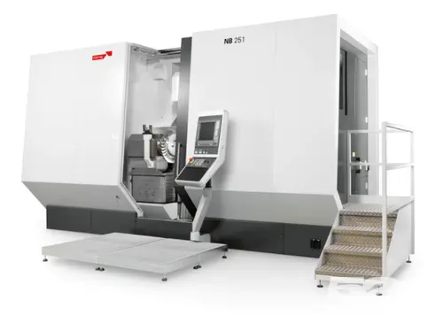 Explore the new STARRAG NB 251 Horizontal Machining Center. X/Y/Z 700/400/400 mm, 28 kW power, 18,000 RPM, 62 ATC, HSK-A63 (A80) taper, 5-axis for precision manufacturing.