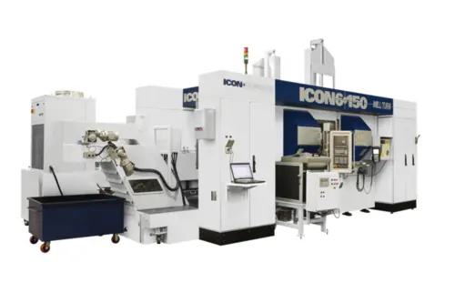 The ICON 6-150 designed with four machining stations and two dedicated loading/unloading stations, the ICON was developed around flexible machining principles. Equipped with a six position table, it shuttles pallets to four machining modules for fast, ultra-precision cutting.