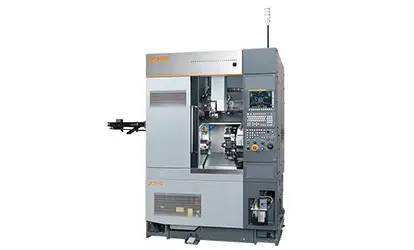 XT Series with a A2-5 spindle with in and out part conveyors and high-speed gantry load system. Equipped with spindle thru coolant and built for un-attended operation with the flexibility of a job shop machine.