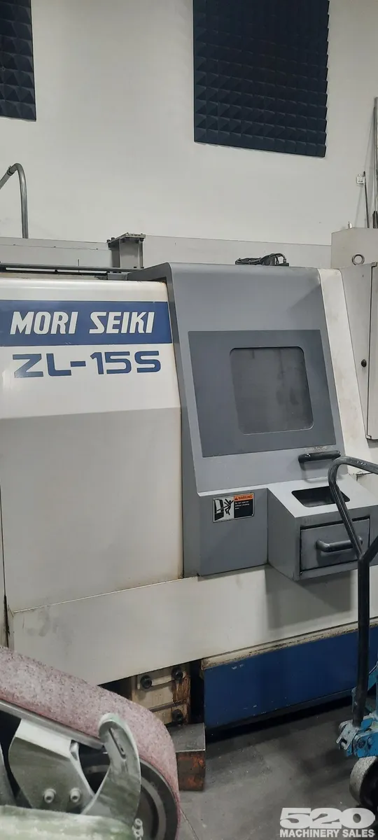 Used 1997 MORI SEIKI ZL-15S CNC Lathe. Sub Spindle, Chip Conveyor, Swing: 18.1", Machining Length: 24.6", X/Z Travel: 8.7"/17.7". Requires parameter reload after move. Power: 15 hp, Max RPM: 5,000.
