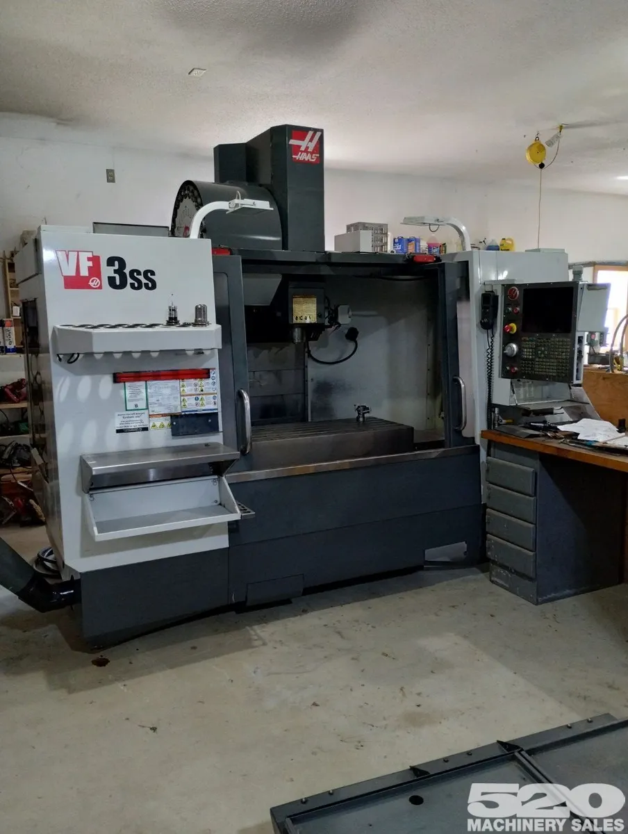 2011 Haas VF-3SS Vertical Machining Center: Used, 12,000 RPM spindle, probing, TSC, chip auger, LED lighting. Powered by 30 hp, 24 ATC, CT 40 taper, and offers 40" x 20" x 25" travel on a 48" x 18" table. Perfect for high-speed machining.