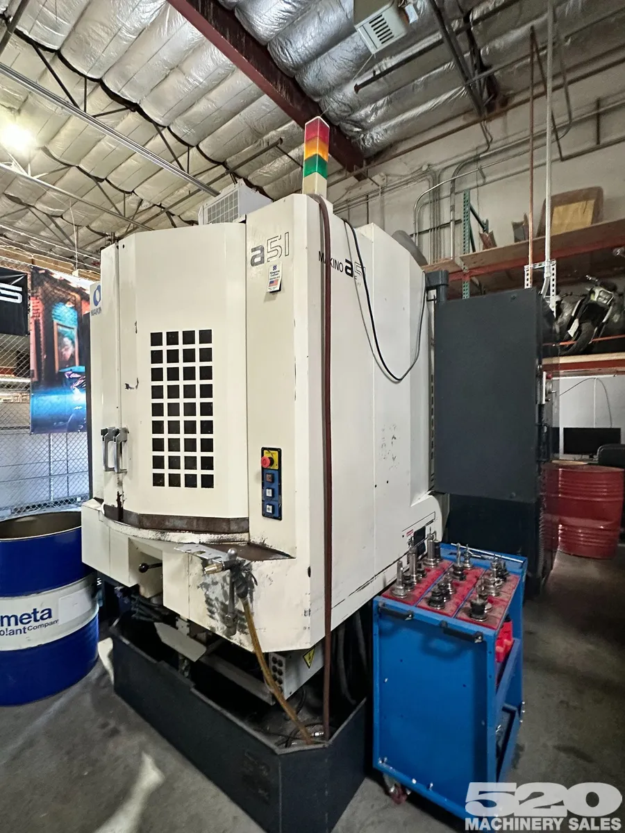 MAKINO A51 Horizontal Machining Center, 2006. Used, but equipped with a newer spindle and spindle motor. Features 22" X/Y, 19.7" Z, 12,000 RPM, 60 ATC, CAT-40 taper, and dual 15.7" pallets. Ideal for precision and efficiency.