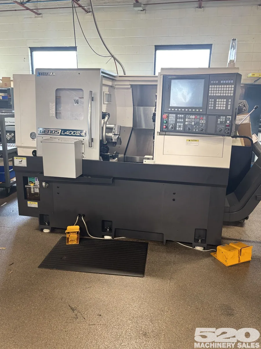 2024 Okuma Genos L400II-EX 500 CNC Turning Center with tailstock available now. Features 15 hp power, 2-axis, 3,000 RPM, 8" chuck, 2.75" bar capacity, and hydraulic chuck. Equipped with parts catcher, tool presetter, and more. Low hours.