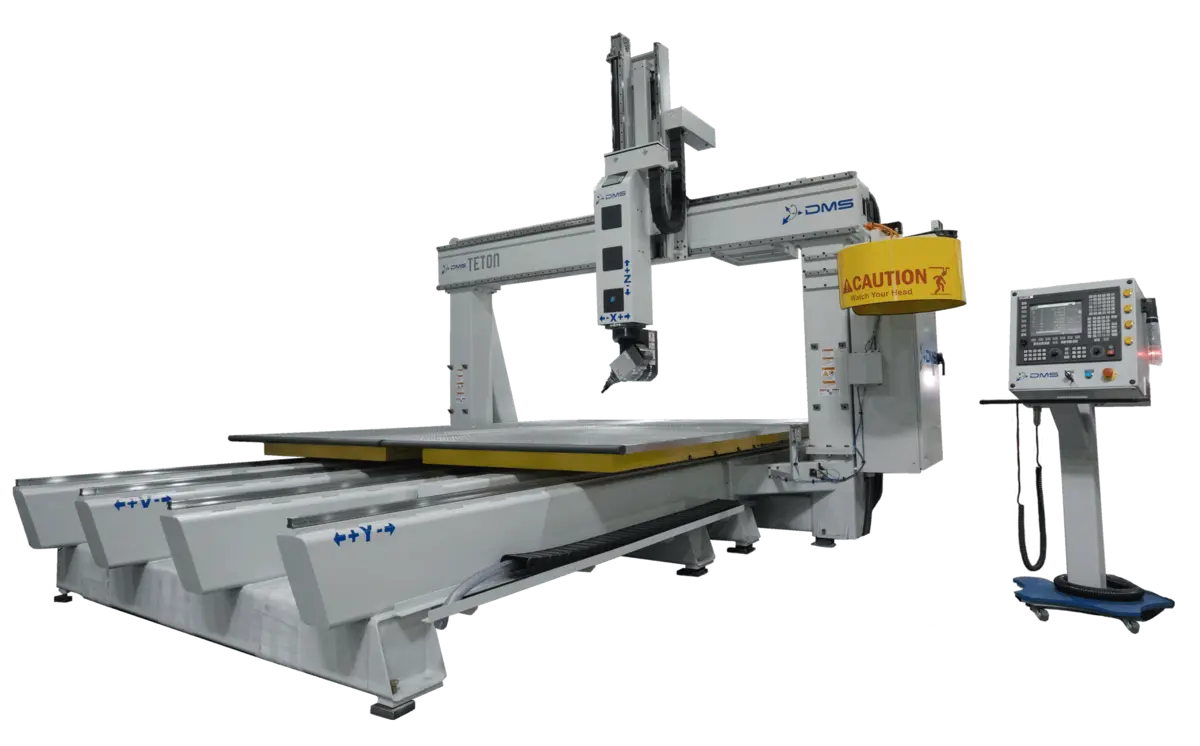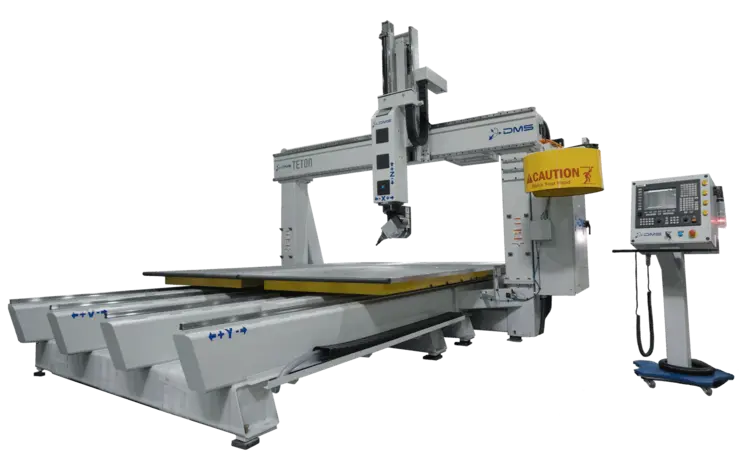 The Teton5, with its advanced 5-axis CNC capabilities, now boasts enhanced efficiency through pendulum processing, allowing for continuous operation and minimized downtime. This feature is perfect for high-volume production environments where maximizing machine utilization is key. The fixed gantry offers unmatched rigidity in High-Z applications which ensures that the Teton5 remains at the forefront of precision and flexibility, catering to industries that demand the highest standards of accuracy and efficiency.