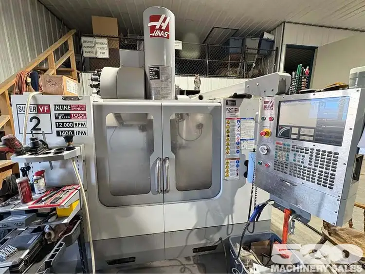 2007 Haas VF-2SS CNC Vertical Machining Center. Machine is in very good condition and can be inspected under power as needed. Options include: Probing, coordinate rotation and scaling, custom macros, spindle orientation, 4th axis prewire, 24 position side-mount automatic toolchanger, and 55 gallon coolant tank.