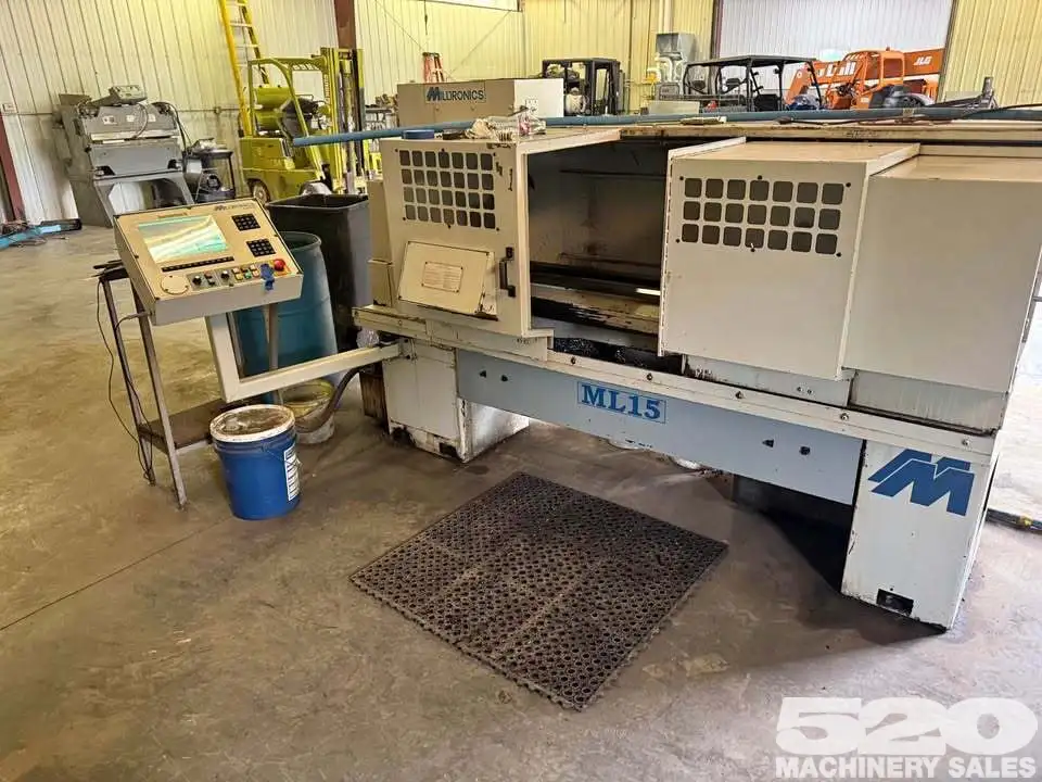 2000 Milltronics ML15 CNC Lathe. Machine runs well and can be inspected under power as needed. Options include: toolpost, tailstock, and 8" chuck.