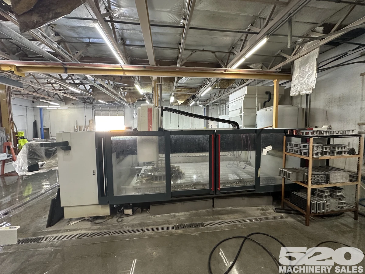2017 Intermac Master 38.3 CNC Router, used, features a 78"x126" table, 15 hp, and 12,000 RPM. Includes tooling: vacuum cups, ISO 40 holders, and polishing tools. Dimensions: 255"W x 193"L x 8.45'H. Weight: 15,100 lbs.