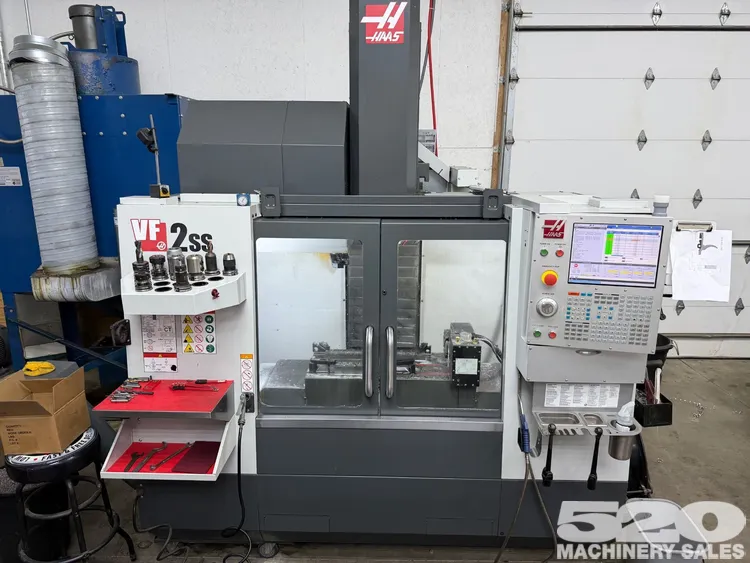 HAAS VF-2SS Vertical Machining Center, 2022 model, pre-owned. Features travel dimensions X: 30", Y: 16", Z: 20", power at 30 HP, max RPM of 12000, 24-tool ATC, and CT or BT 40 taper. Table dimensions 14" x 36".