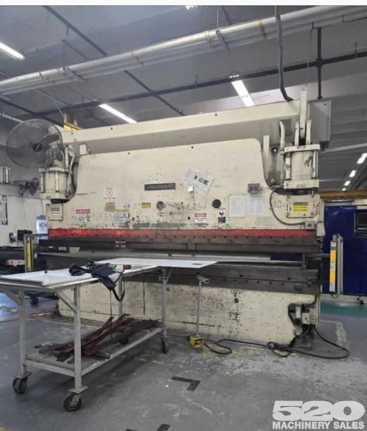 CINCINNATI INC 230CBx12 Hydraulic Press Brake available. Features 230T tonnage, 14' overall length, and 12.6' between housings. Used condition with 10" stroke. Ideal for precision bending tasks.