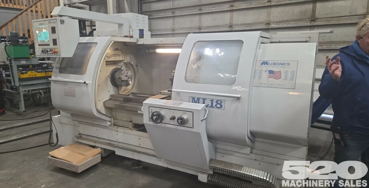 2006 Milltronics ML18 CNC Lathe W/ Pragati Turret. Machine is in good condition and can be seen under power as needed. Options include: chip conveyor, Pragati 8 station turret, tailstock, Centurion 7 (conversational + G/M code), and remote electronic handwheel.