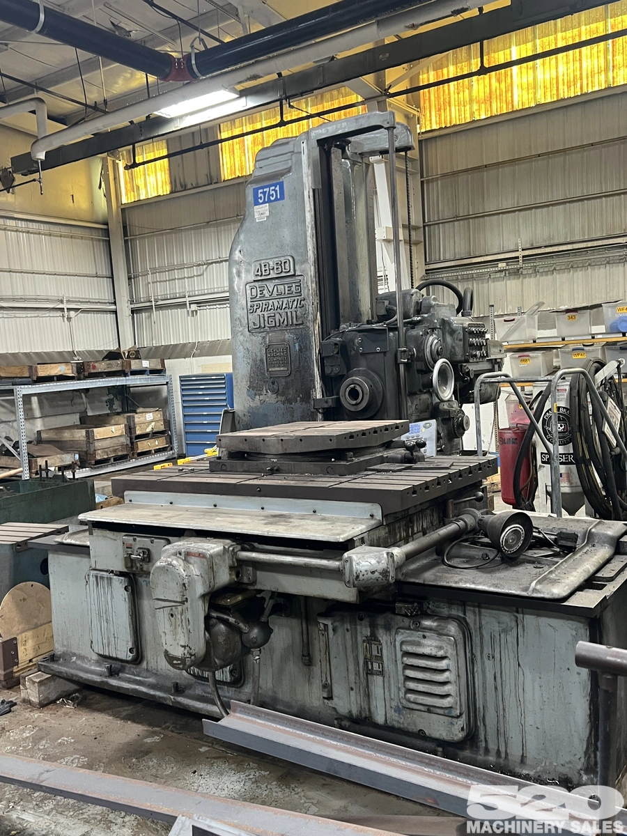 NO LONGER USED DEVLIEG 4B-60 JIGMILL. WAS RUNNING WHEN PARKED. CAN SEE RUNNING WITH ARRANGEMENTS.BUYER RIGS AND MOVES. HAS MANUALS.