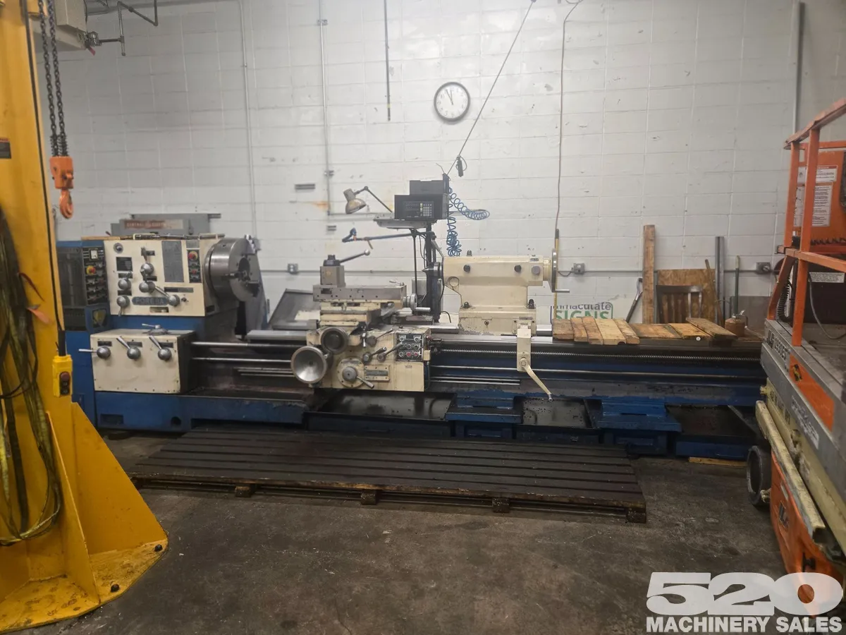 2000 Poreba TPK-90A1/3M engine lathe with 36" swing, 132" centers, 3.75" spindle bore, 22 kW power, and 900 RPM. Comes with 19-3/4" 3-jaw and 22" 4-jaw chucks, two steady rests, Sony DRO, and all manuals. Used condition.