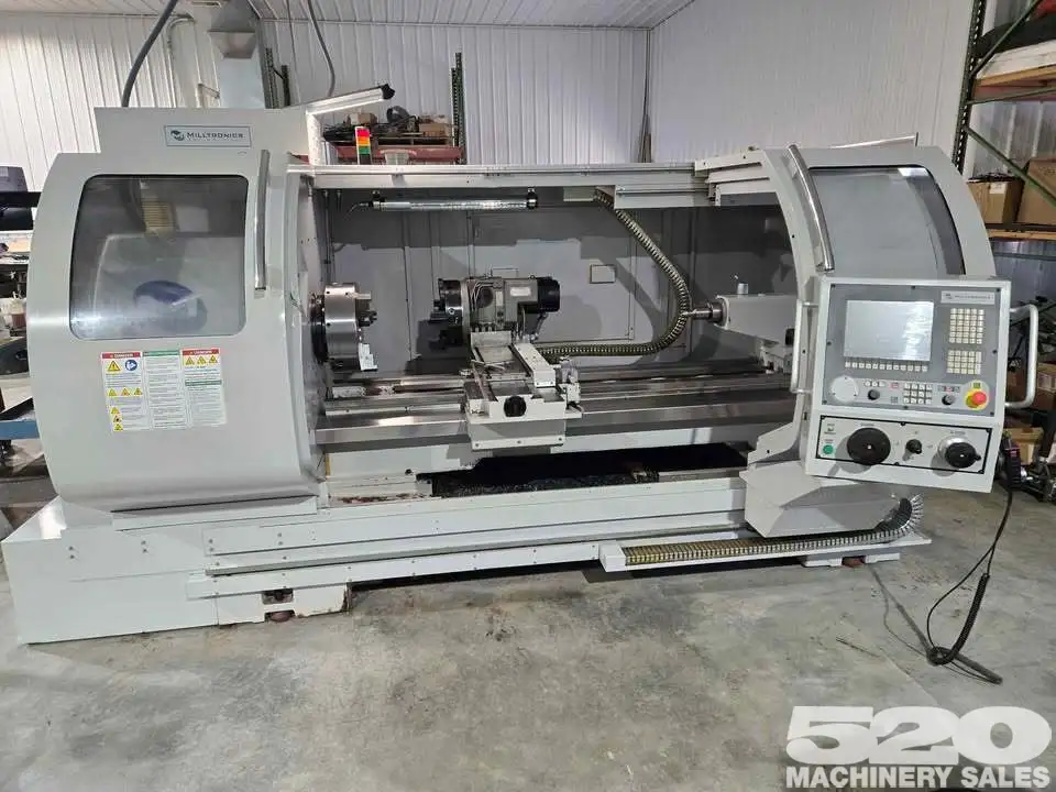 2006 Milltronics ML22/60 CNC Lathe With Conversational Control. Machine is in good shape and can be inspected under power as needed. Options include: 8 station turret, steady rest, tailstock, 16" Bison chuck, Live Tooling, "C" axis, Milltronics 7200 CNC control (conversation plus G/M code), remote electronic handwheel, and miscl toolholders.
