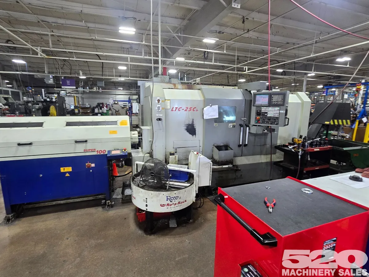 2008 LEADWELL LTC-25CL CNC Lathe. New TURCITE in 2021 and NEW Z-axis ball screws replaced in 2024. Features include a 26.3" swing, 40.1" machining length, 12" chuck, 3" bar capacity, 25 HP, 3500 RPM, 17.7" turning diameter, and a tailstock for precision tasks.