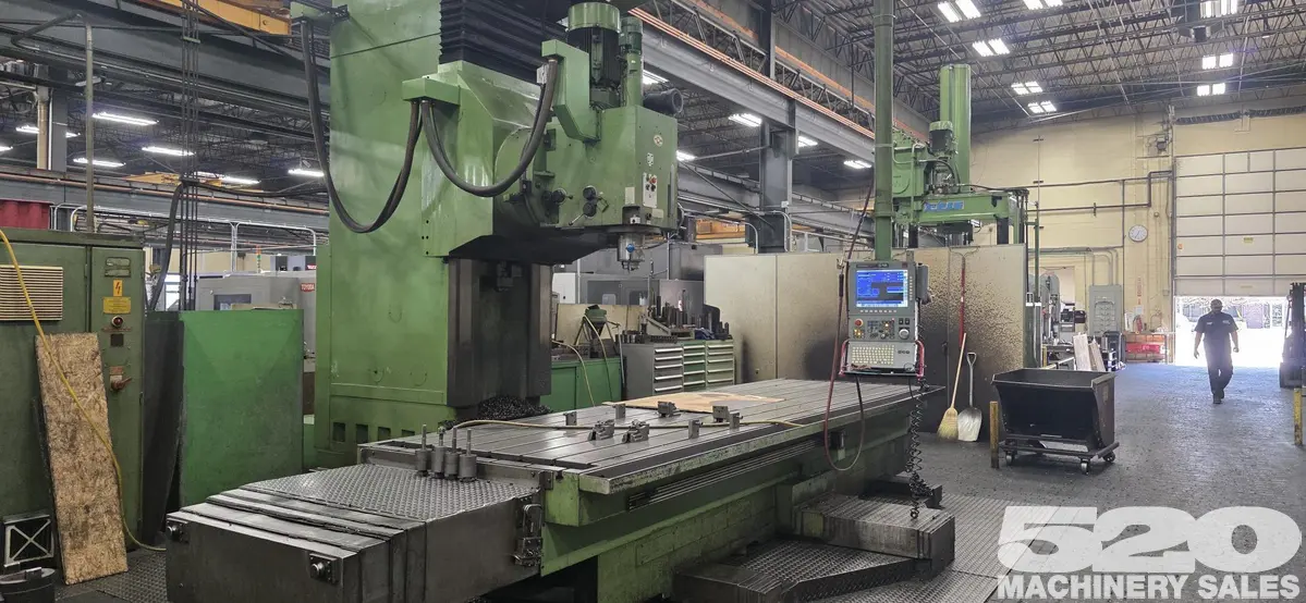 DROOP & REIN FSM 1406 D30 Bed Type Mill, 1988 model, equipped with retrofit FIDIA C10 C3 Axis CNC Control. Features include a 55"x203" table, 94.5" longitudinal travel, and 40 hp power. Comes with manuals. Ideal for precision milling tasks.