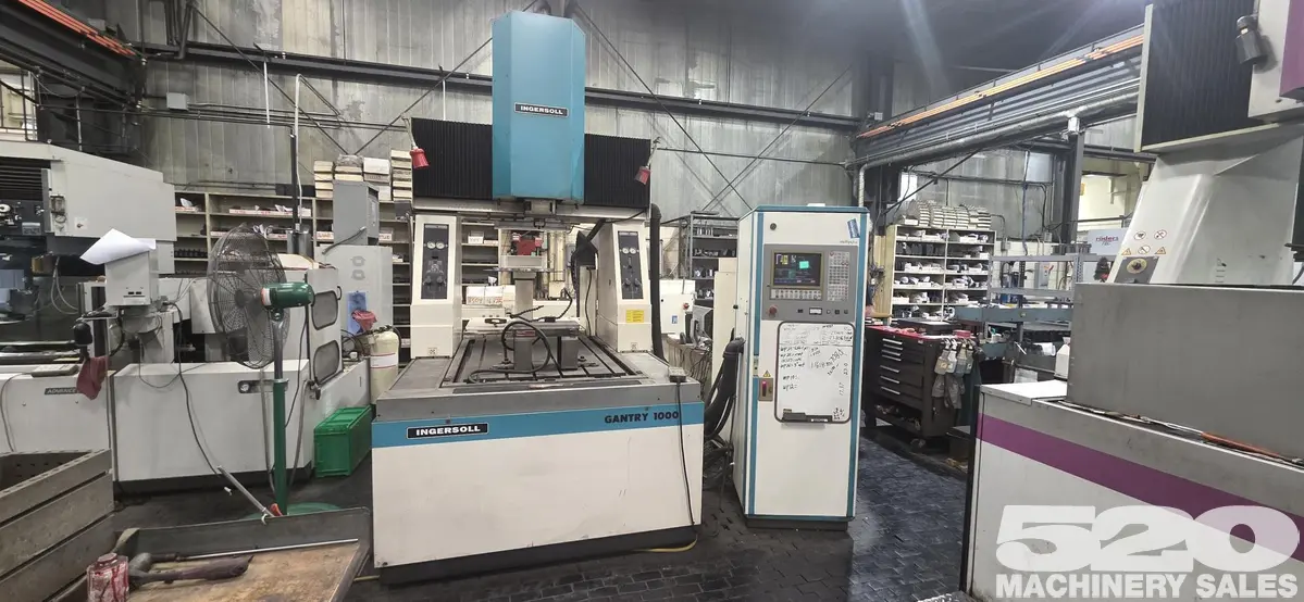 1998 INGERSOLL HANSEN GANTRY 1000 Sinker EDM available in good used condition. Features a 35 A power pack, 1,500 mm x 900 mm table, and 1,350 mm x 700 mm x 500 mm travel dimensions. Comes with Multipulse CNC Control.