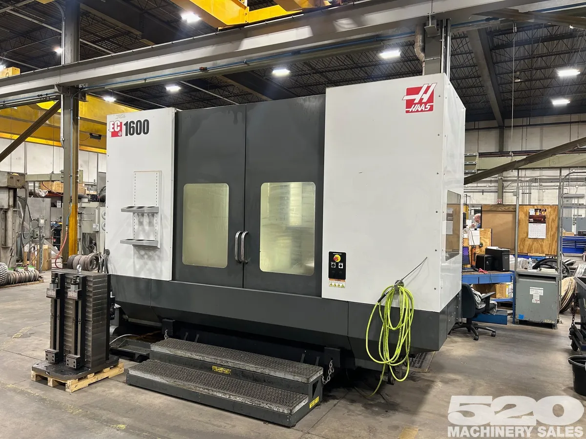 2010 HAAS EC-1600 HMC, a used horizontal machining center featuring 64" X, 50" Y, 32" Z axes, 30 hp power, 7,500 RPM, and a 30-tool ATC. Equipped with CAT/BT 50 taper, 36" pallet width, and 3-axis capability.