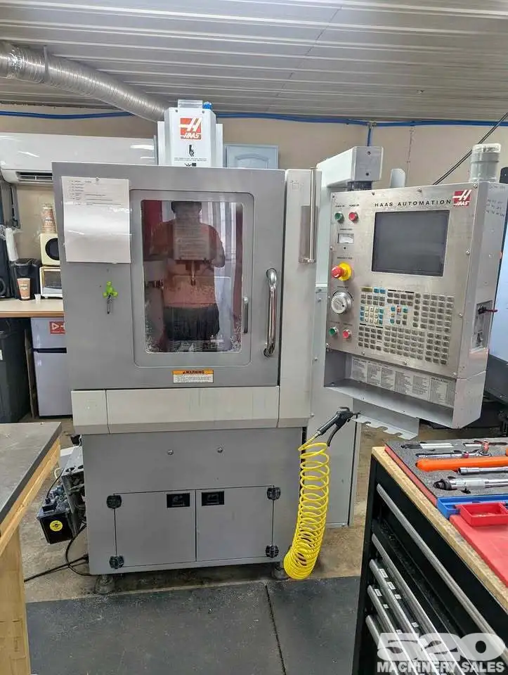 2006 Haas OM-2A CNC Vertical Machining Center. Machine in good condition and can be inspected under power as needed. Machine includes: 20 station toolchanger, ISO20 spindle, 40,000 RPM spindle, flood coolant, single phase 220V power, Renishaw probe, Saunders plate, and 20 toolholders.