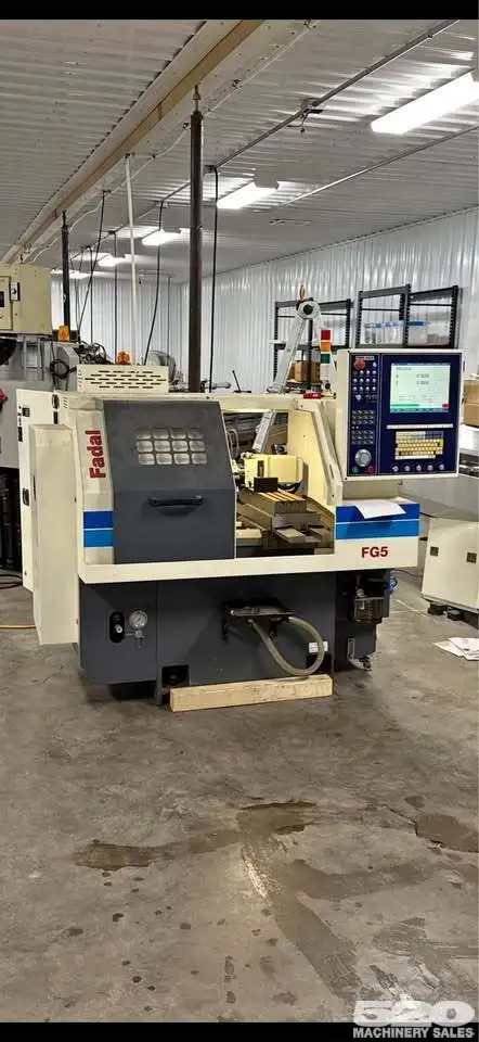 2014 Fadal FG5 CNC Lathe (Like New). Machine is in excellent condition and spent it's life at a trade school that closed it's CNC program. Options include: 5" chuck, 8 station turret, 6,000 RPM spindle, parts catcher mechanism (no basket),