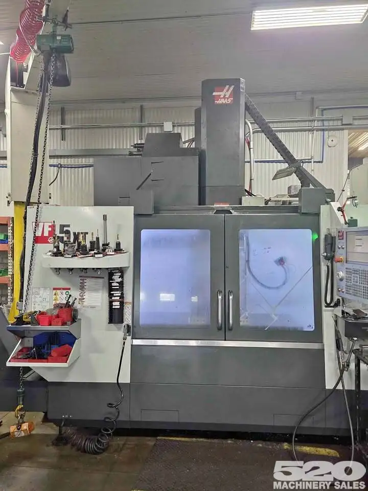 2019 Haas VF-5/50XT CNC Vertical Machining Center. Machine is in very good condition and can be inspected under power as needed. Options include: 95 Gallon Coolant Tank, Chip Auger, Auto Door, Early Power Failure Detection Module, Ethernet, Haas Connect, Media Display, Programmable Coolant Nozzle, High Speed Machining, VPS Editing, 4th Axis Prewire, 1 GB memory, Through Spindle Coolant, Remote Jog Handle, Rigid Tap, 30 Position Side-Mount Toolchanger, Enclosure Exhaust System, Custom Macros, Spindle Orientation, Coordinate Rotation and Scaling, and Oil Skimmer.