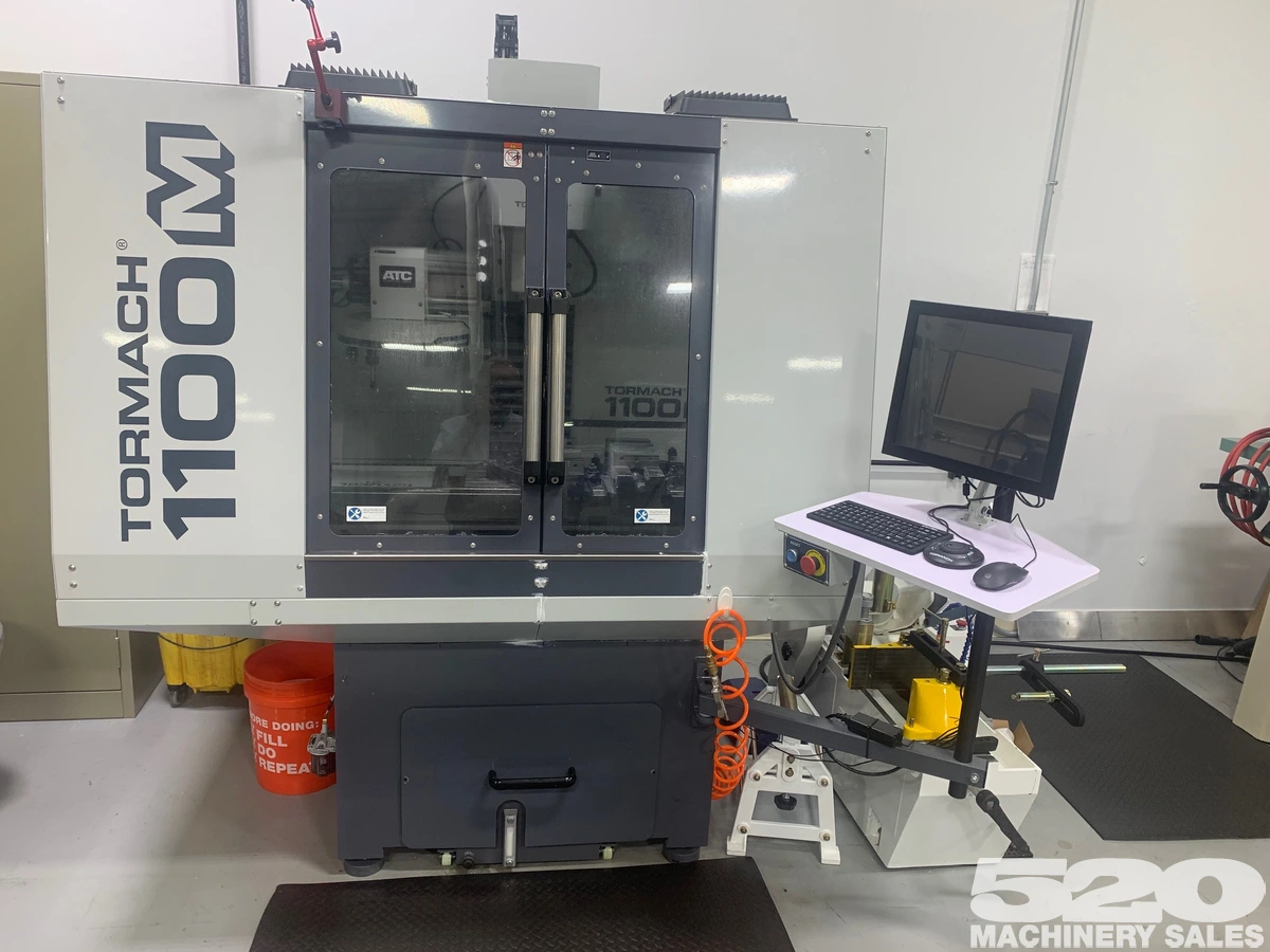 2019 Tormach 1100M CNC Vertical Machining Center. Machine is in excellent condition and can be viewed under power upon request. Options include: 12 station automatic toolchanger, flood coolant kit, power drawbar kit, speeder assembly, digitizing probe, tool setter, RapidTurn deluxe package, and more.